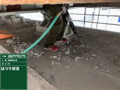 現在、はつり作業と桁補強材の取り付けを並行して行っています。